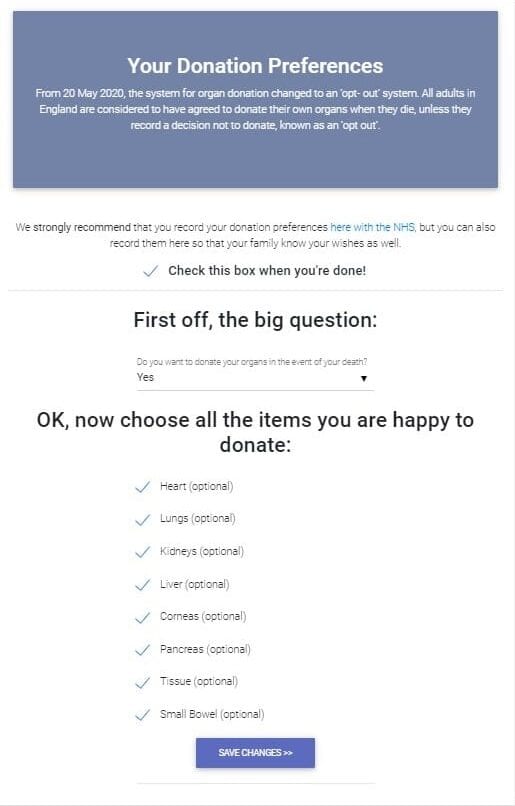 From 20 May 2020, the system for organ donation changed to an ‘opt- out’ system. All adults in England are considered to have agreed to donate their own organs when they die, unless they record a decision not to donate, known as an ‘opt out’.