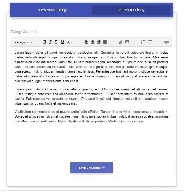 Your eulogy captures who you were as a person, so writing your own eulogy allows you to show people how you want them to remember you. Writing your own eulogy allows you a chance to share a final piece of yourself with the people you care about most.